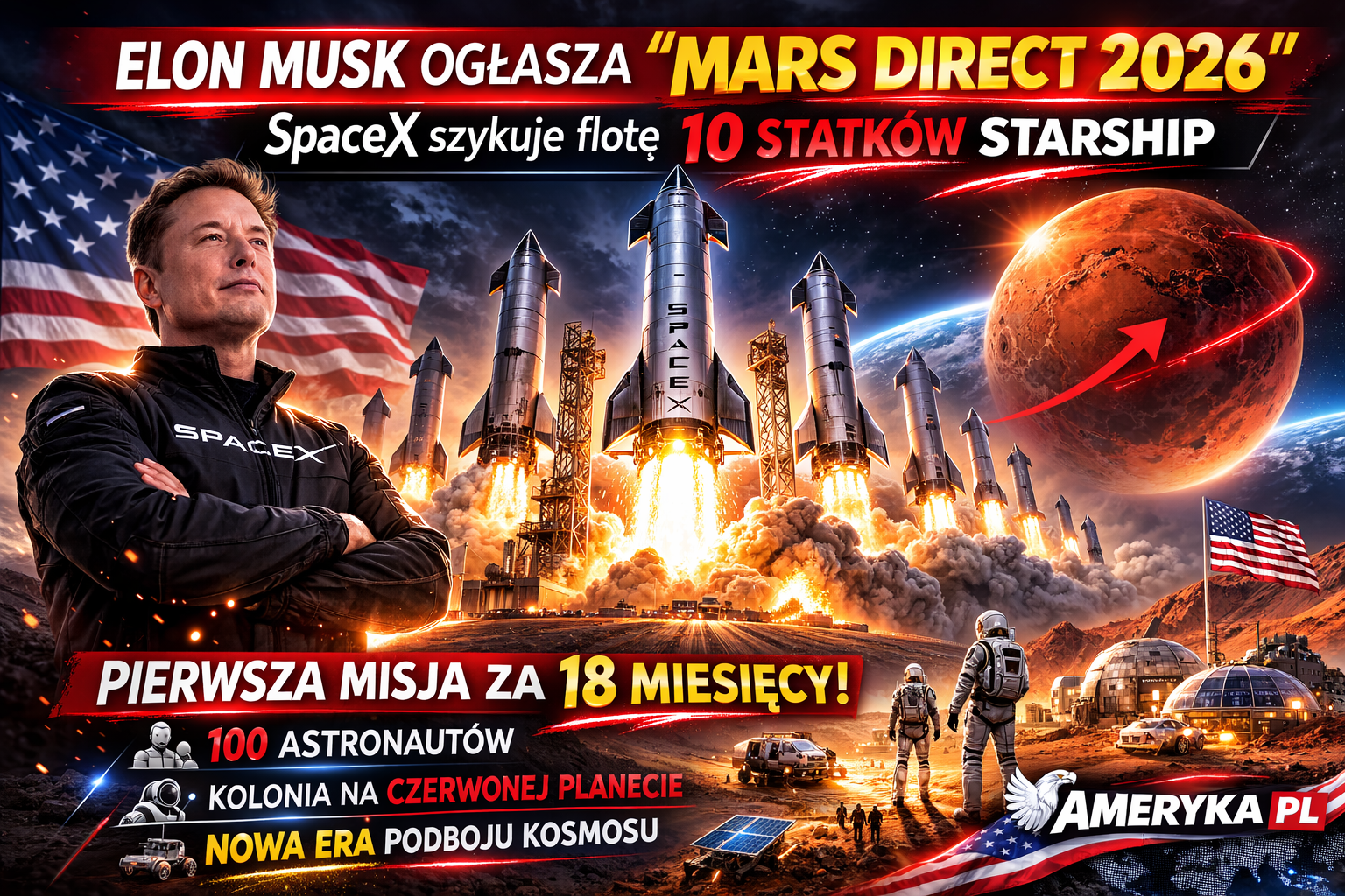 Elon Musk ogłasza “Mars Direct 2026”. SpaceX szykuje flotę 10 statków Starship